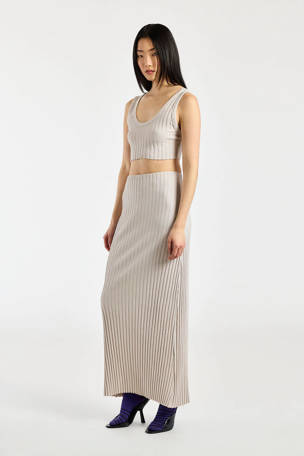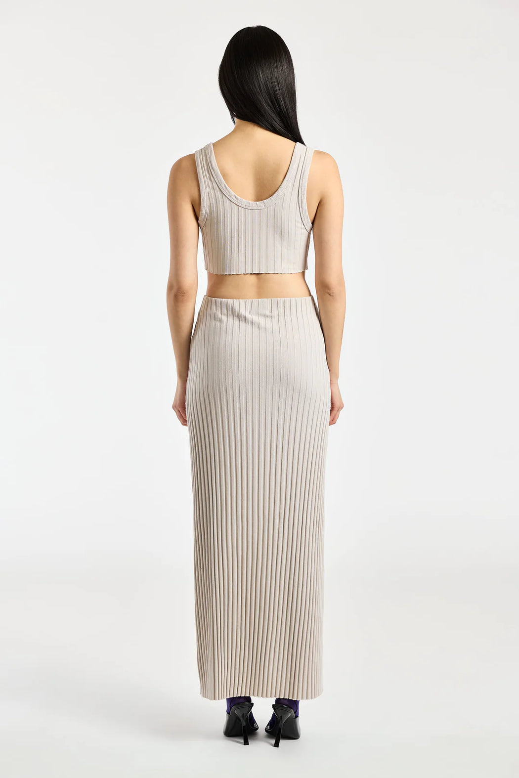The Capri Maxi Skirt is designed to pair perfectly with any top from our Capri Collection. Crafted from a super soft, 8x8 wide ribbed knit, this versatile separate hits right above the ankle, offering an elongated and figure-hugging fit perfect for any outing, day or night.